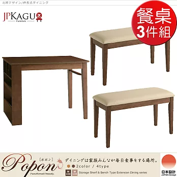 JP Kagu 日系附收納架延伸餐桌3件組-中餐桌+中長椅2入(二色)咖啡褐色 ![]() |